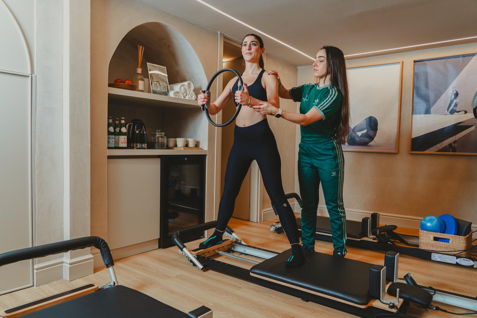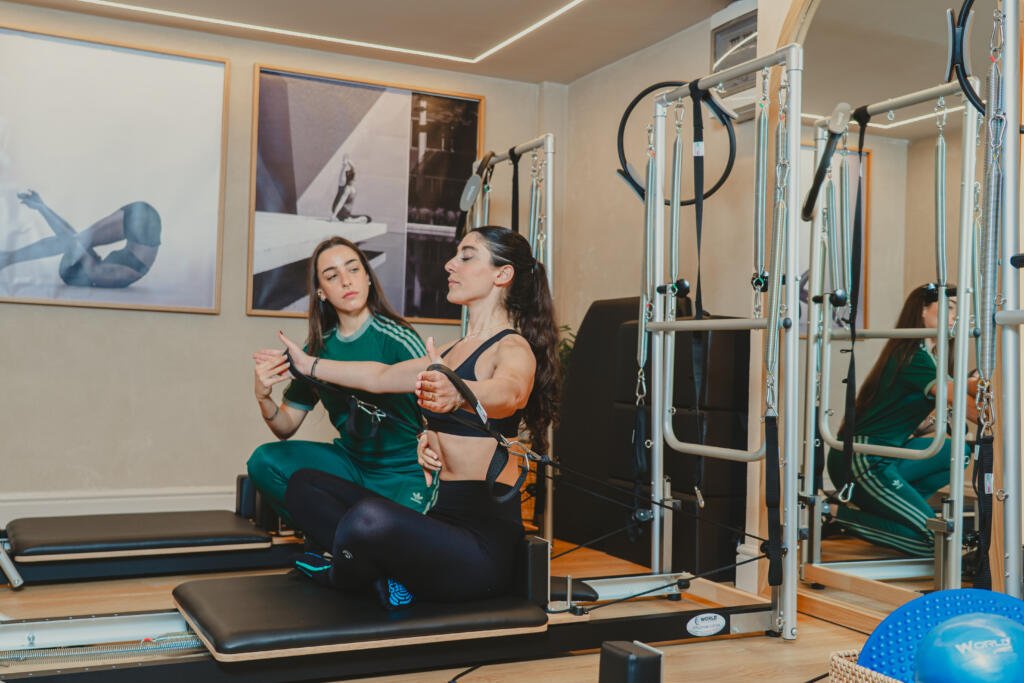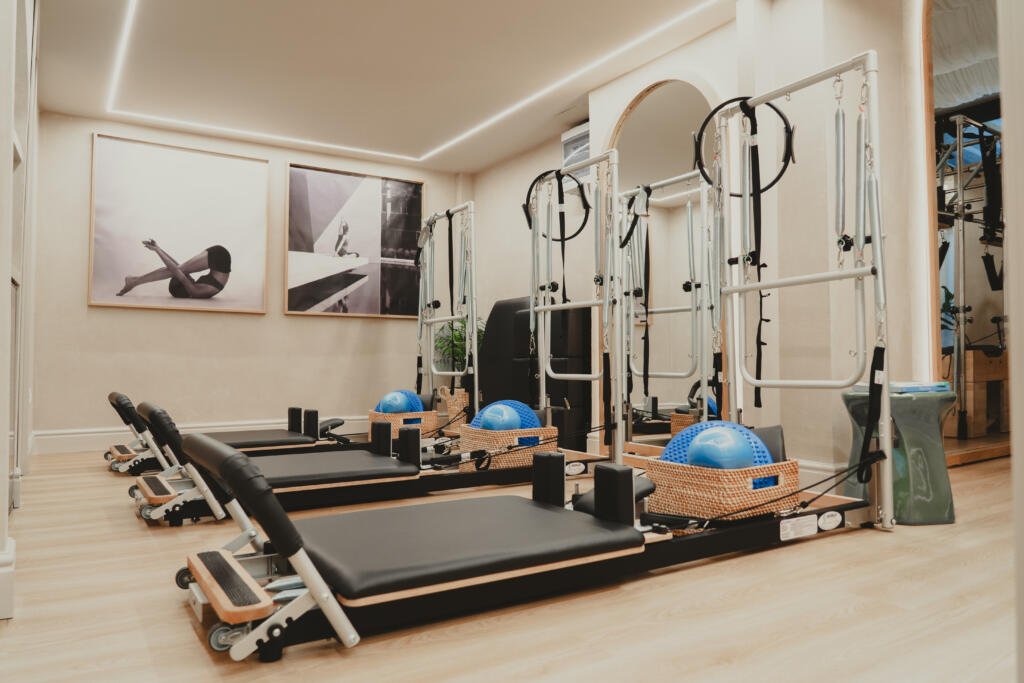 “La sala Reformer Pilates è uno spazio moderno e accogliente, progettato per offrire un’esperienza di allenamento completa e personalizzata. Al centro della stanza si trovano i Reformer, attrezzi iconici e versatili, dotati di molle regolabili, barre, cinghie e pedali che permettono di eseguire una vasta gamma di esercizi mirati per migliorare la forza, la flessibilità, la postura e l’equilibrio. Ogni Reformer è studiato per adattarsi ai diversi livelli di abilità e alle esigenze specifiche di ogni praticante, dai principianti agli utenti più avanzati.